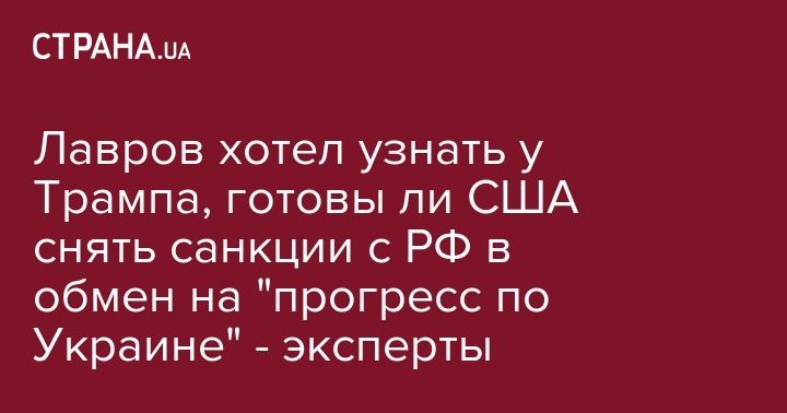 Лавров хотел узнать у Трампа, готовы ли США снять санкции с РФ в обмен на "прогресс по Украине" - эксперты