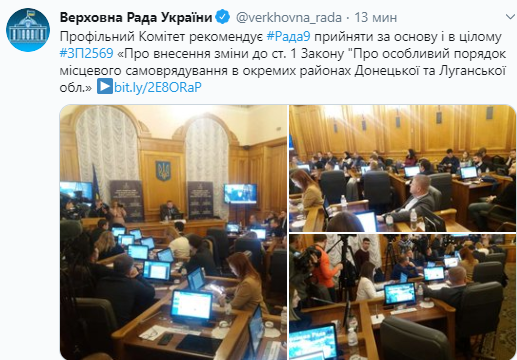 После этого в "Слуге народа" зарегистрировали в Раде проект изменений к первой статье действующего закона. В ней фигурировала дата окончания его действия - 31 декабря 2019 года.В принципе, это единственные изменения в законе об особом статусе Донбасса.