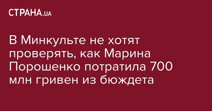 В Министерстве культуры, которое возглавляет Владимир Бородянский, не проводили и не собираются проводить в ближайшее время аудит работы и распределения бюджетных средств Украинским культурным фондом (УКФ), который возглавляет жена экс-президента Марина Порошенко. Об этом говорится в ответе Минкульта на запрос издания УН.