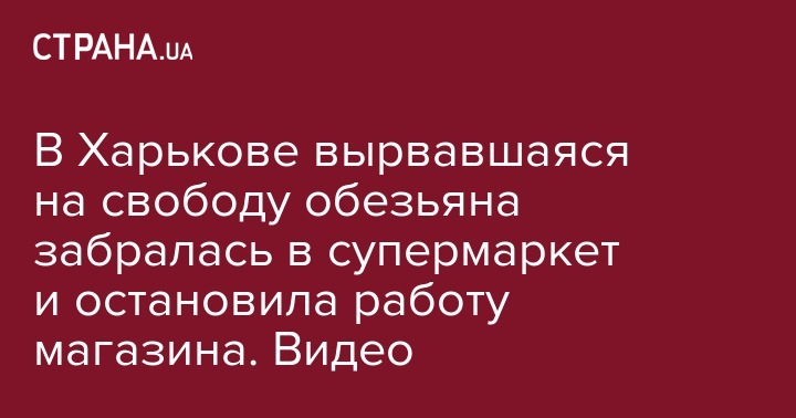 В Харькове вырвавшаяся на свободу обезьяна забралась в супермаркет и остановила работу магазина. Видео