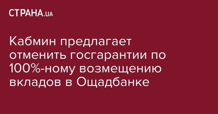 Кабмин предлагает отменить госгарантии 100% возврата депозитов в государственном Ощадбанке. Об этом сказано в опубликованном вечером 11 декабря законопроекте Кабмина №2571 "О внесении изменений в некоторые законодательные акты Украины по отдельным вопросам функционирования банковской системы", пишет "Страна" в своем материале о 22 главных норм законопроекта Кабмина "про Приватбанк".