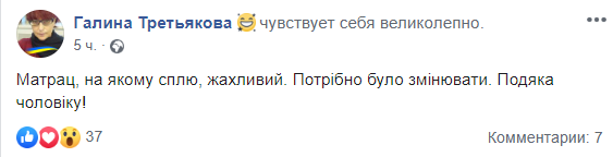 Отметим, что нардеп настолько обрадовалась новому матрасу, что написала об этом в Facebook.