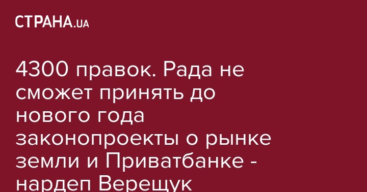 4300 правок. Рада не сможет принять до нового года законопроекты о рынке земли и Приватбанке - нардеп Верещук