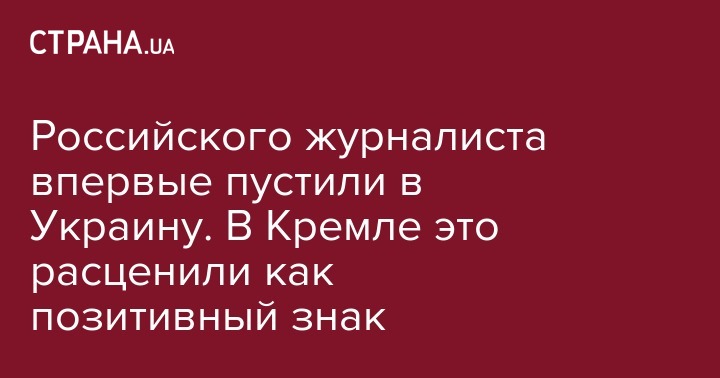 Пресс-секретарь президента России Дмитрий Песков заявил, что въезд российского журналиста в Украину на фоне общего запрета и изгнания российских СМИ из этой страны - позитивный знак.
