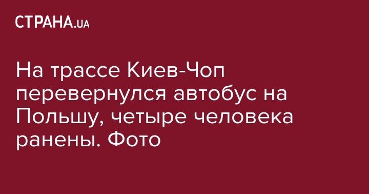 На трассе Киев-Чоп в Житомирской области вечером 12 декабря перевернулся автобус с пассажирами, следовавший в Польшу, в результате чего четыре человека госпитализированы. Об этом сообщает Новоград-Волынский городской совет в Facebook.
