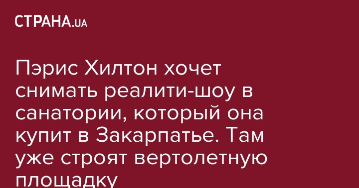 Американская наследница бизнес-империи Hilton Пэрис Хилтон после покупки в Закарпатье комплекса "Деренівська Купель" планирует провести в нем съемки реалити-шоу, которое будет транслироваться на одной из международных стриминговых платформ. Переговоры о покупке курорта в Закарпатье американская дива ведет с лета, передает 24tv.ua.