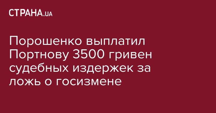 Бывший президент Украины Петр Порошенко выплатил Андрею Портнову 3500 гривен судебного сбора по проигранному судебному делу.
