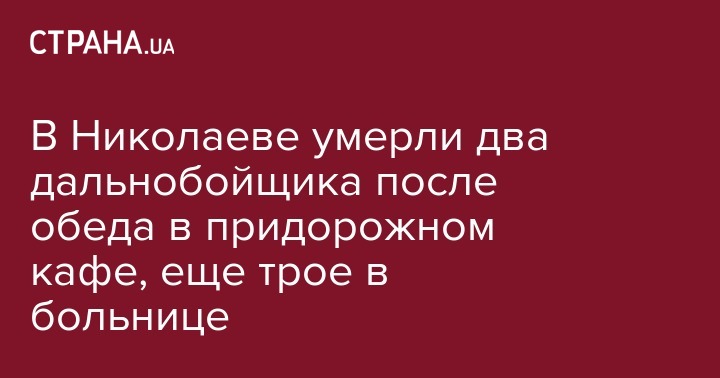 В Николаеве от отравления едой и алкоголем в придорожном кафе умерли два дальнобойщика, еще троих госпитализировали. Об этом сообщает отдел коммуникации Нацполиции в Николаевской области.