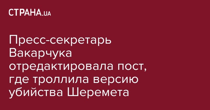 Пресс-секретарь Вакарчука Хоменко, которая в своем посте на Facebook троллила версию мотивов убийства Шеремета, вскоре изменила его.