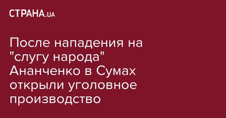 По факту нападения на народного депутата от "Слуги народа" Михаила Ананченко правоохранители Сум открыли уголовное производство. Об этом на своей странице в соцсети написала пресс-секретарь прокурора Сумской области Наталья Науменко.
