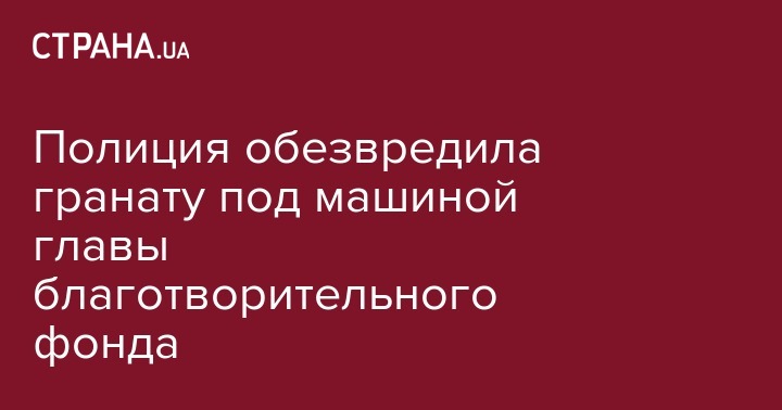 Полиция обезвредила гранату, найденную сегодня в автомобиле руководителя благотворительного фонда в селе Чубинское Бориспольского района. Об этом сообщили в пресс-службе областного управления Нацполиции.