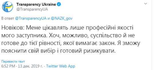 Также текстовую трансляцию в Twitter опубликовало Transparency International Ukraine.