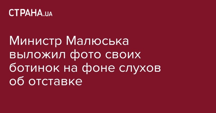 Министр юстиции Украины Денис Малюська, который, по сообщению депутата Анны Скороход, подал прошение об отставке премьер-министру Украины Алексею Гончаруку, 16 декабря выложил в соцсети фото из кабинета со своими башмаками на столе. Загадочный кадр появился на странице министра в Facebook.
