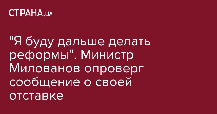 "Тут говорят, что я написал заявление об отставке – это вранье. Мне работа нравится, я буду дальше делать реформы", – сказал Милованов в видеообращении, опубликованном на его странице в соцсети Facebook в понедельник.