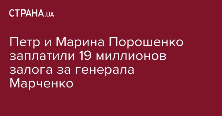 Петр Порошенко и его жена Марина внесла 19 млн гривен из 20 млн залога, необходимого для освобождения генерала Дмитрия Марченко, подозреваемого по делу о бронежилетах, сообщает пресс-служба партии "Европейская солидарность".