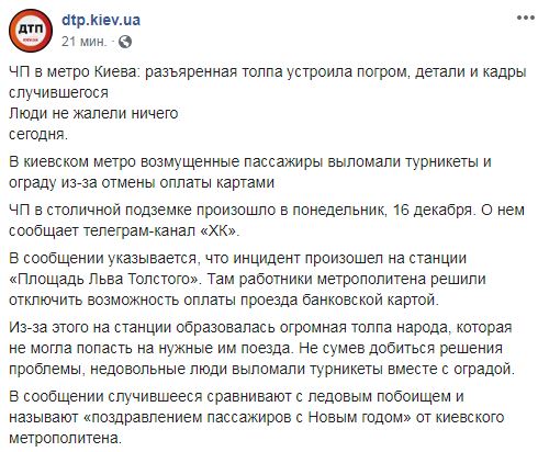 В сообщении случившееся сравнивают с ледовым побоищем и называют "поздравлением пассажиров с Новым годом" от киевского метрополитена.