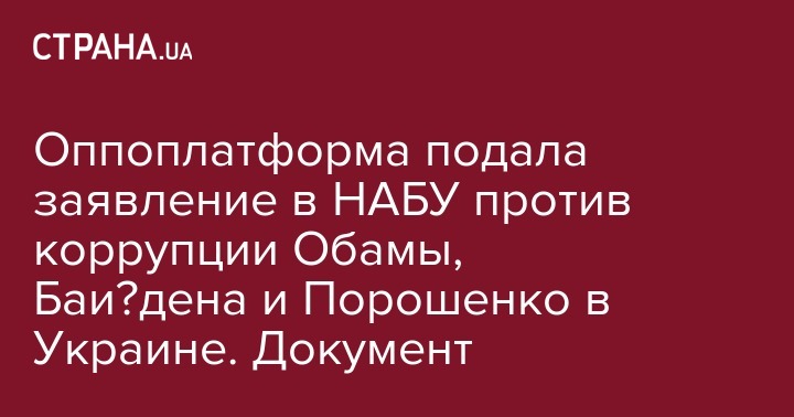 Оппоплатформа подала заявление в НАБУ против коррупции Обамы, Байдена и Порошенко в Украине. Документ