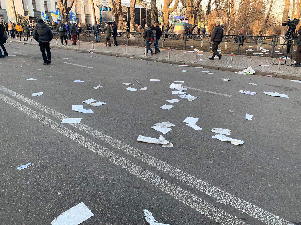 По словам полиции, изначально протестующие согласовали сцену и две большие белые палатки напротив парламента. Ситуация начала накаляться, после того, как активисты принесли еще армейский палатки и начали рушить асфальт перфоратором на Грушевского.