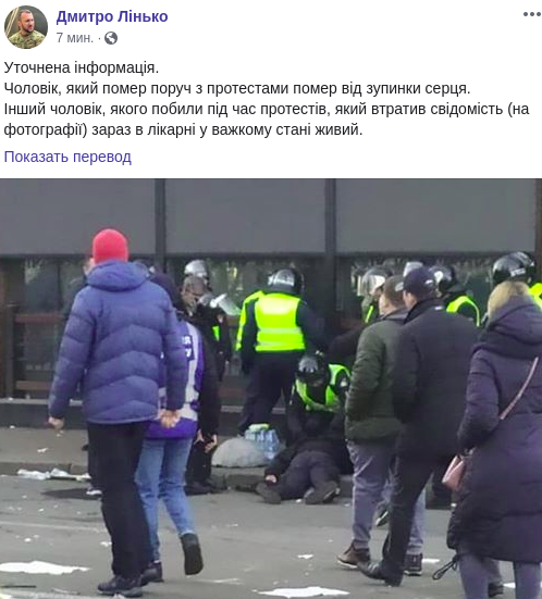 Стоит отметить, что смерть мужчины наступила еще до того, как под Радой начались столкновения с полицией.