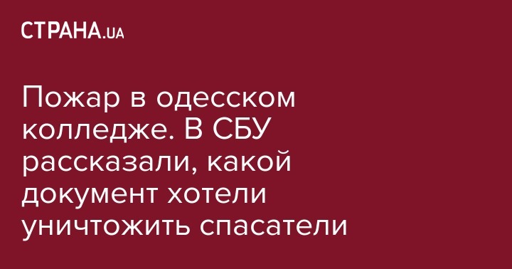 Пожар в одесском колледже. В СБУ рассказали, какой документ хотели уничтожить спасатели