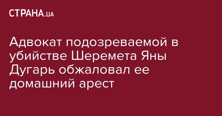 Адвокат Николай Ореховский, представляющий интересы подозреваемой в убийстве журналиста Павла Шеремета Яны Дугарь, обжаловал решение Печерского районного суда Киева о ее круглосуточном домашнем аресте до 8 февраля 2020 года.