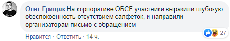 "На корпоративе ОБСЕ участники выразили глубокую обеспокоенность отсутствием салфеток, и направили организаторам письмо с обращением"