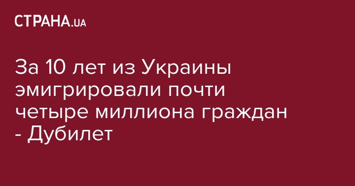 Почти четыре миллиона украинцев эмигрировали из Украины, начиная с 2010 года. Об этом в своем Телеграм-канале сообщил министр Кабинета министров Дмитрий Дубилет.