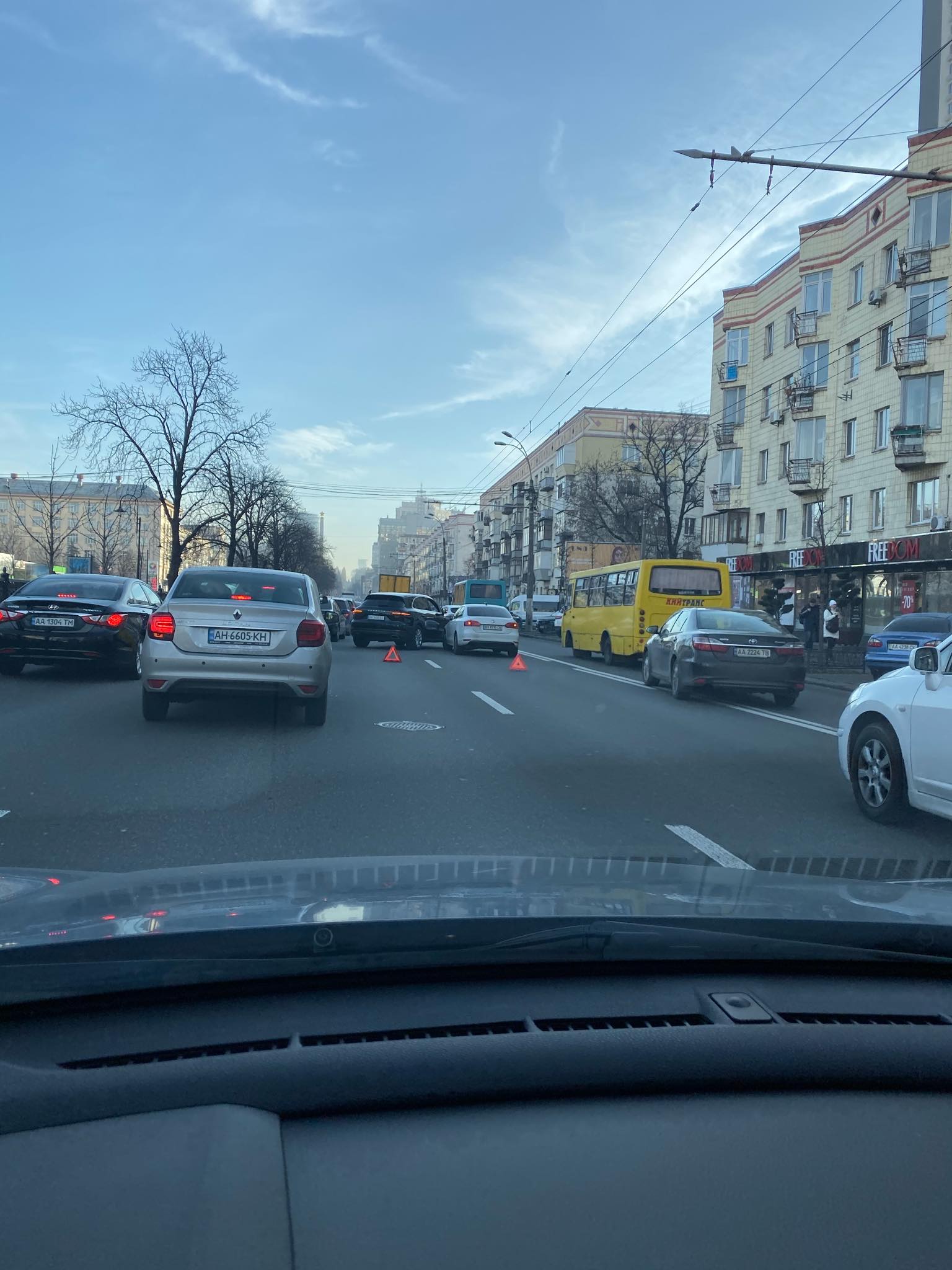 В Киеве на проспекте Победы из-за аварии образовалась гигантская пробка. Фото