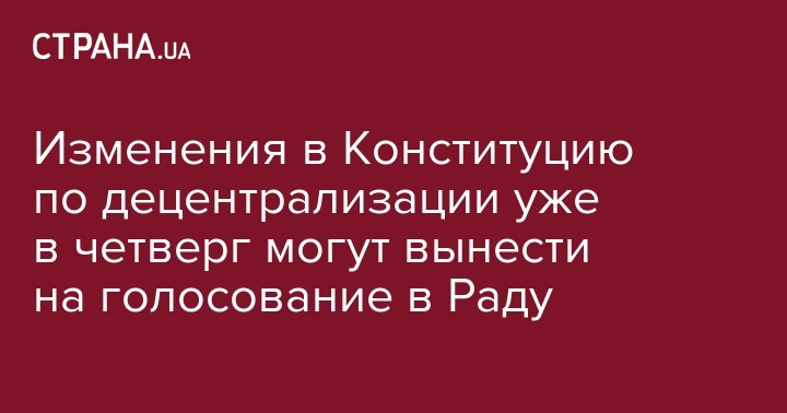Законопроект президента Владимира Зеленского по изменениям к Конституции по децентрализации  уже в четверг могут отправить в Конституционный суд для получения вывода о его соответствии требованиям статей 157 и 158 Конституции Украины.