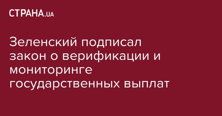 Президент Украины Владимир Зеленский подписал закон "О верификации и мониторинге государственных выплат" № 324-ІХ, который Верховная Рада приняла 3 декабря. Об этом сообщает пресс-служба президента.