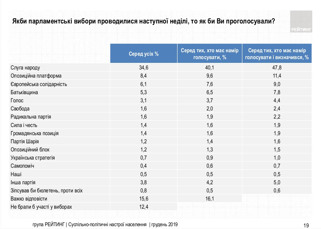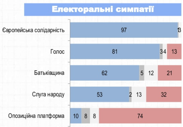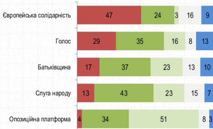 Забавно, что в некоторых партиях, которые выступали против прямых переговоров Зе и Путина, сторонников этой встречи оказалось больше, чем противников. Например, в "Голосе" - 19% за и 8% против. Только избиратели "Европейской солидарности" показали обратную динамику.