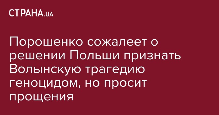 Президент Украины прокомментировал сегодняшнее решение польского Сейма о признании геноцидом со стороны ОУН-УПА событий на Волыни в 1942-43 годах. Об этом говорится на официальной странице главы государства в Facebook.