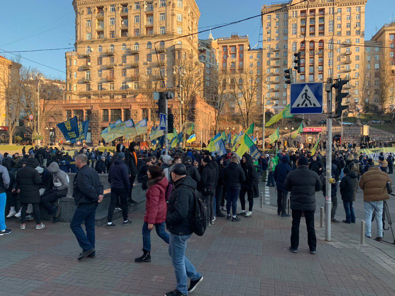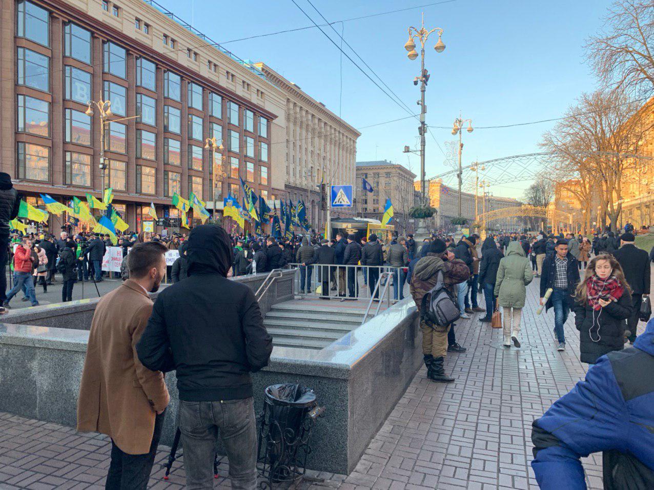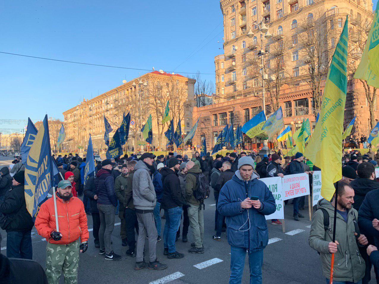 Протестующий против рынка земли Нацкорпус перекрыл Крещатик. Фото