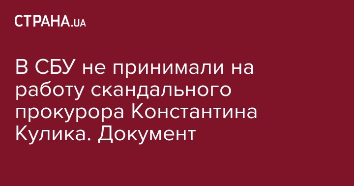 Служба безопасности Украины отрицает, что приняла на работу скандального экс-прокурора прокурора Генеральной прокуратуры Константина Кулика. Об этом сообщают "Украинские новости" со ссылкой на ответ СБУ на информационный запрос.