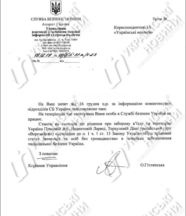 "На данный момент запрашиваемое вами лицо в СБУ не работает", - говорится в ответе.