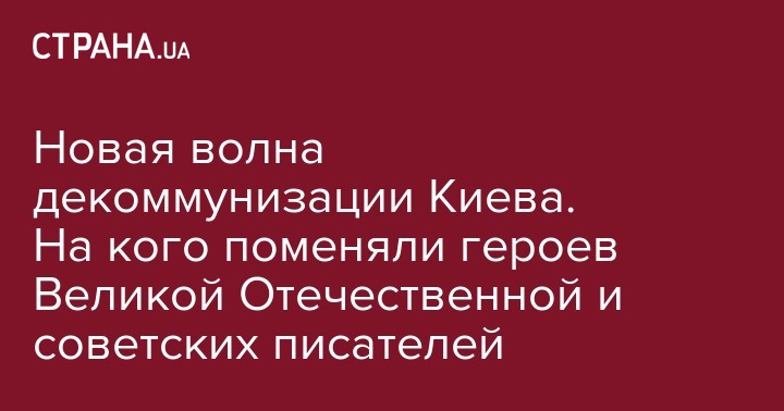 Так, улица в Шевченковском районе в честь советского писателя, участника Великой Отечественной войны Ивана Шевцова переименована в честь члена УПА Василия Макухи. Улица Маршала Гречко в Подольском районе - в улицу Ивана Выговского.