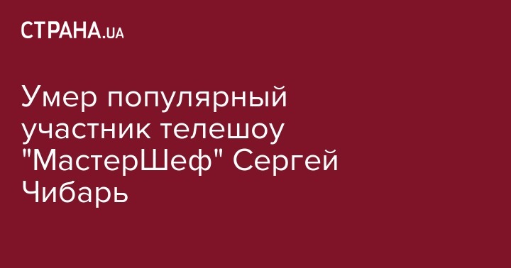 Умер популярный участник телешоу "МастерШеф" Сергей Чибарь