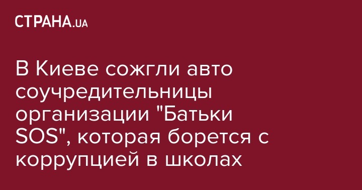 В Киеве у соучредительницы организации "Батьки SOS", которая борется с коррупцией в школах, Алены Парфеновой в ночь на 20 декабря сгорел автомобиль. Об этом она сообщила на своей странице в соцсети.