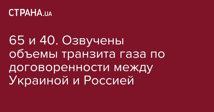 Украина и Россия договорились, что по новому контракту о транзите газа на 5 лет, который может быть продлен после 2024 года, объем транзита в 2020 году составит 65 млрд кубометров, а в 2021-2024 годах – по 40 млрд кубометров.