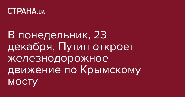 В понедельник, 23 декабря, президент РФ Владимир Путин отправится в плановую  поездку в Южный федеральный округ: там он примет участие в  мероприятиях, связанных с открытием железнодорожного сообщения по Крымскому мосту, который соединит Россию с аннексированным полуостровом. Об этом пишет "Интерфакс".