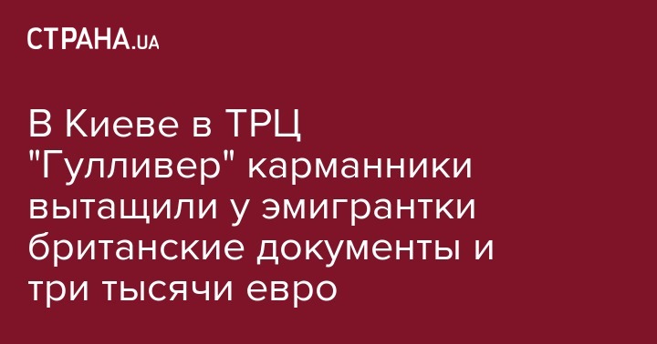 В Киеве в ТРЦ "Гулливер" карманники вытащили у эмигрантки британские документы и три тысячи евро