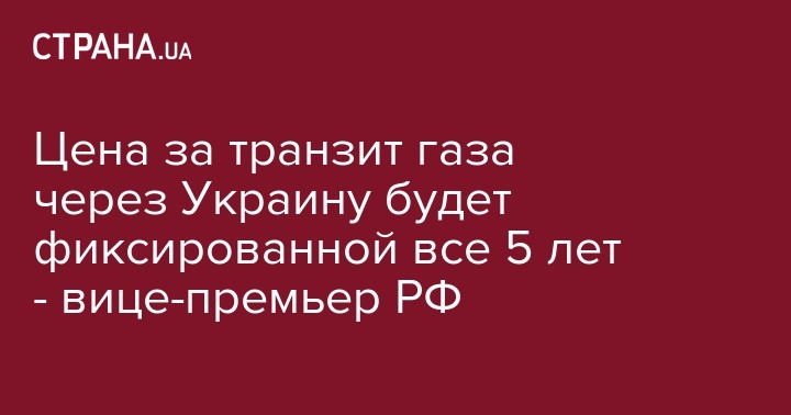 Цена за транзит газа через Украину будет фиксированной все 5 лет - вице-премьер РФ