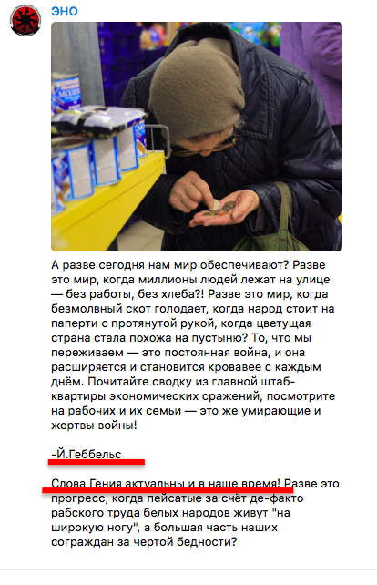 Йозефа Геббельса, одного из ближайших соратников Адольфа Гитлера, авторы ЭНО называют "гением" и цитируют его высказывания: