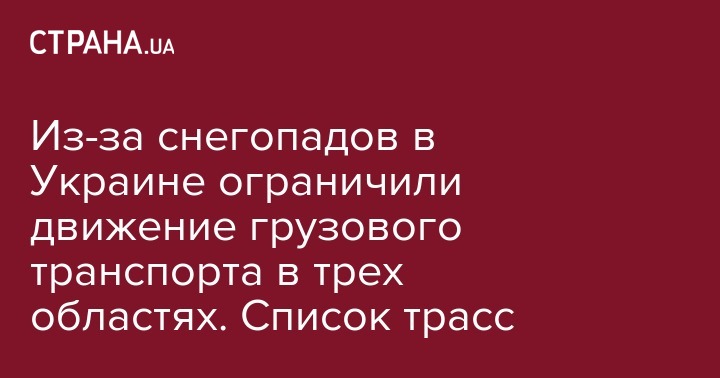 Из-за снегопадов в Украине ограничили движение грузового транспорта в трех областях. Список трасс
