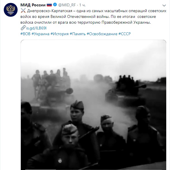 В этот день, 24 декабря 1943 года, началась Днепровско-Карпатская стратегическая наступательная операция Советской армии по освобождению Правобережной Украины. Об этом напомнило Министерство иностранных дел России у себя в Тwitter.