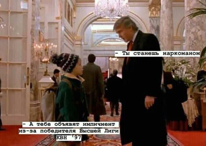 Стоит отметить, что в сети уже появились "фотожабы" на этот эпизод, в одной из них, к примеру, обыграли актуальные события из жизни артиста и президента США. Калкину, к примеру, припомнили его проблемы с алкоголем и наркотиками, а Трампу - его противостояние с Конгрессом по поводу импичмента, которое началось после его разговора с президентом Украины Владимиром Зеленским.