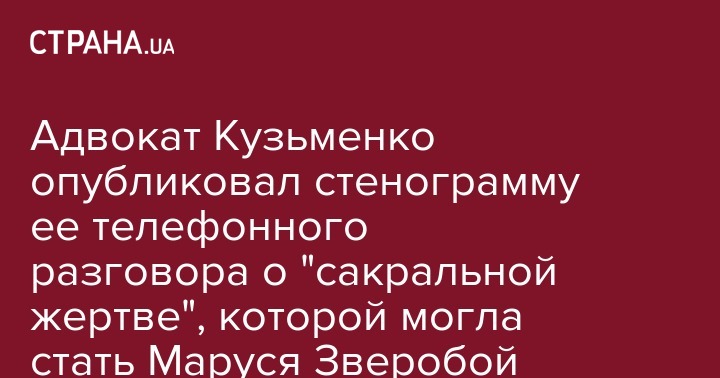 Опубликован текст телефонной беседы подозреваемой в совершении убийства журналиста  Павла Шеремета Юлии Кузьменко, в которой она обсуждает действия против волонтера Маруси Зверобой и ее детей. Стенограмму обнародовал адвокат Юлии Кузьменко Влал Добош. Об этом написал в Facebook адвокат Владислав Добош, который защищает Кузьменко.