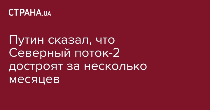 Президент России Владимир Путин заявил, что завершение проекта строительства газопровода "Северный поток-2" займет еще несколько месяцев.