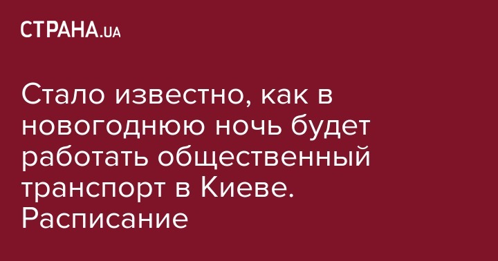 В новогоднюю ночь, с 31 декабря 2019 года на 1 января 2020 года, в Киеве работу наземного общественного транспорта продлят до 5:00. Об этом сообщается на сайте Киевской городской госадминистрации.