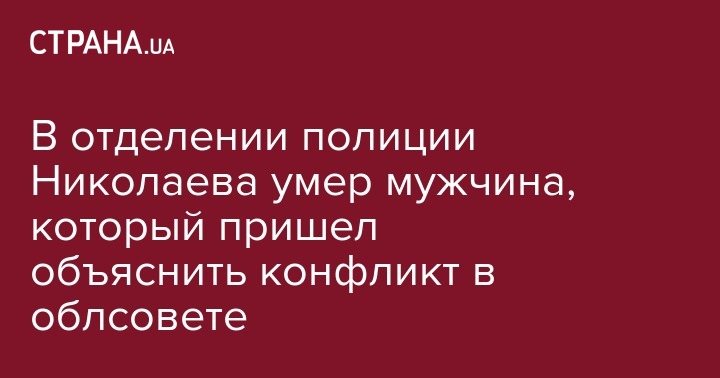В Николаеве 49-летний мужчина скончался в Центральном отделе полиции города, когда приехал в участок давать объяснения после конфликта на сессии облсовета. Об этом сообщает пресс-служба областной полиции.
